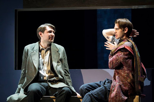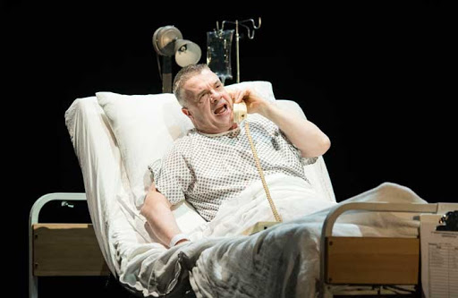 Kushner uses the physical and medical descriptions of AIDS to confront his audience, he starts early in the play with Prior revealing his diagnosis to Louis through the lesion he has found on his arm saying; ‘KS baby. Lesion number one. Lookit. The wine dark kiss of the Angel of death.’ This begins an unfolding of medical cataloguing and confrontation with the audience. From detailed medical descriptions with Prior and Roy’s Doctors that show both the uncertainty and the multitude of medical issues an AIDS diagnosis held in 1985. Kushner- and Elliot in her staging- also don’t shy away from depictions of AIDS. In the original New York production actor Stephen Spinella who played Prior was forced to given an interview in which he confirmed he did not in fact have AIDS so realistic was his performance. While neither Lane or Garfield will likely be confronted with such tabloid rumours this time around, the play contains and is directed with a realism that is difficult to watch as both characters succumb to their illness. Seen convulsing with pain, collapsing, and bleeding on stage it’s a raw and honest approach to the illness- nobody quietly slips away into an attractive death, when Belize says of Roy ‘He died a hard death’ the audience has seen it, lived it with him and cannot argue that point no matter what they think of Roy. A particularly striking moment as well is when Roy pulls a drip from his arm covering the stage, and the other actors in his blood. There really couldn’t be a more confrontational metaphor for bringing the audience into the narrative of living with AIDS in 1985.