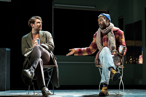 But there’s a lot more to Belize than the ‘sidekick’ to Prior or Roy in a scene and this becomes really apparent though this performance. In other productions, I’ve been left feeling Belize is a little ‘outside’ the central group- here that wasn’t the case, there felt like a rich history to the relationships between the characters. Certainly evident in the chemistry between Stewart-Jarrett and Garfield there was a clear sense of a deep long-term friendship between them and a rich history between the characters. The sweetness and affection in their scenes together- particularly Prior’s hospital scenes, are heart wrenching and the tenderness and affection between them feels so genuine- it’s in fact the look of abject fear and sadness on Stewart-Jarret’s face while Prior breaks down that is more heart-breaking than Prior himself. He may be an observer in many scenes but Stewart-Jarret gives such a sensitive observation of what he sees as Belize the audience is pulled in and heart-broken along with him. Previously as well scenes with Louis and Belize can feel forced, as if actors aren’t quite sure of the relationship between them, here there was a clear history- fractious certainly- but a history of a different sort of friendship and ongoing relationship between them. Even in the Epilogue (the subtleties of which deserve its own post) there was a silent rendering of what has perhaps passed since- and although Belize has slightly less to do in that scene there was a real sense of his presence and his place in that narrative.