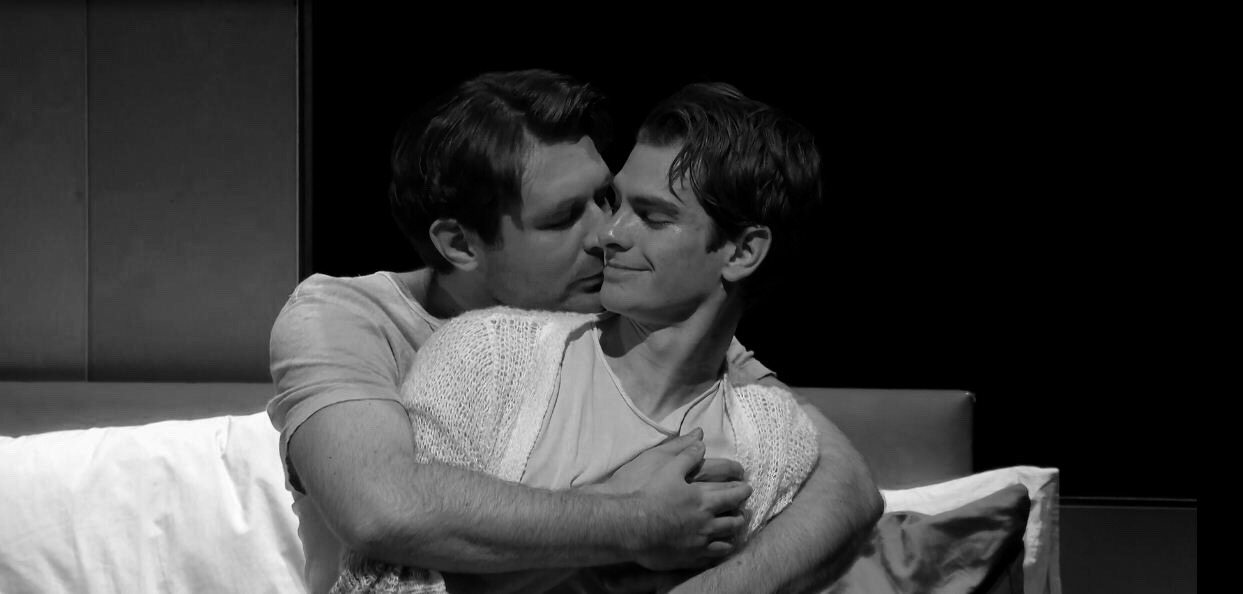 The point (dear the point) of their relationship dynamics across this scene is both that is allows Garfield to bring out some quiet complexities of the character that are lost in the bigger moments (of his own making and the plays) but also proof that he is playing the tiny details as much as the big picture. There is, to Elliott’s credit an entire secondary scene that plays out at this point outside the dialogue, making full use of the split scenes. During their discussion about justice/argument about Prior’s condition he throws in a few variations to keep a feeling of spontaneity or naturalism to their relationship- he changed almost nightly (in seemed) a variation on what he did for the line ‘You’re over sexed’ from biting McArdle’s neck, tickling him or various other things. A neat acting trick to keep things fresh over the run but a nice nod to how his Prior also seemed to react differently in this scene according to the mood Garfield was running with that night. He mentioned that his approach was just to ‘live it’ as Prior night on night and this is one of the scenes that seemed to have a fair bit of variation to it. There’s a little bed-time dance that goes on after Louis’ plea of ‘don’t get any sicker’ after a fierce embrace and a kiss they both settle down for bed.