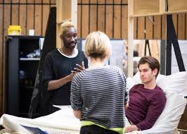 Back to Prior then. And in launching into who Prior is, from what we learn on stage, I wonder what do we really know about him- what is set in stone and what in fact is a blank slate for an actor? I don’t doubt, in fact I know that Kushner knows inside out and back to front who Prior (and Louis, and Joe) are in terms of their history (and future). But on paper we actually get less in terms of ‘facts’ than we do about many of the other characters. For those who perhaps haven’t read the play text, additional information we get is that Prior is independently wealthy and works sometimes as a club promoter (as an aside this forms part of my theory on how he and Louis met). That aside, we have only really his behaviour, and a behaviour that is modulated by a key fact; he’s recently learned he’s dying. A challenge for any actor playing Prior is that we never meet him as the ‘real’ him, or the original Prior. We see Prior already fighting already damaged, and we see him after the trauma of his diagnosis, of the play and out the other side. There’s no benchmark for an actor to hang onto, normally in a play an actor gets an establishing moment on stage or screen, the ‘this was how he/she was before’ Prior is already waist deep in grief and trauma and there’s nothing to hang onto for an actor. That’s the challenge of Prior finding him underneath all that, but also giving the Prior that’s true to that moment in his story.