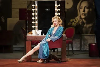 The supporting cast do admirable work, considering they compete not just with Margo Channing and Eve as characters. But also, that the compete with the machinery of Van Hove’s direction. Ultimately its’ them that come out as the most ‘human’…and perhaps that was indeed Van Hove’s point? Stealing perhaps everything from even Anderson/Channing and James/Eve is Monica Dolan as Karen Richards. Given the shared narration with Ian Drysdale as Addison deWitt, she as actress and character subverts exactly what Even and Margo are doing; she doesn’t try to waltz in and steal a scene, she just does. Meanwhile Drysdale is delightfully devious without ever slipping into pantomime caricature. He commands attention and cuts through the noise to refocus the story at key moments and is magnetic with it. Meanwhile Julian Ovenden is charming and at times vulnerable as Channing’s younger man Bill.